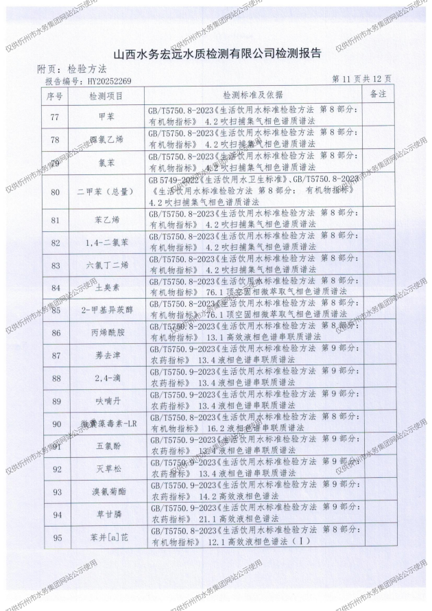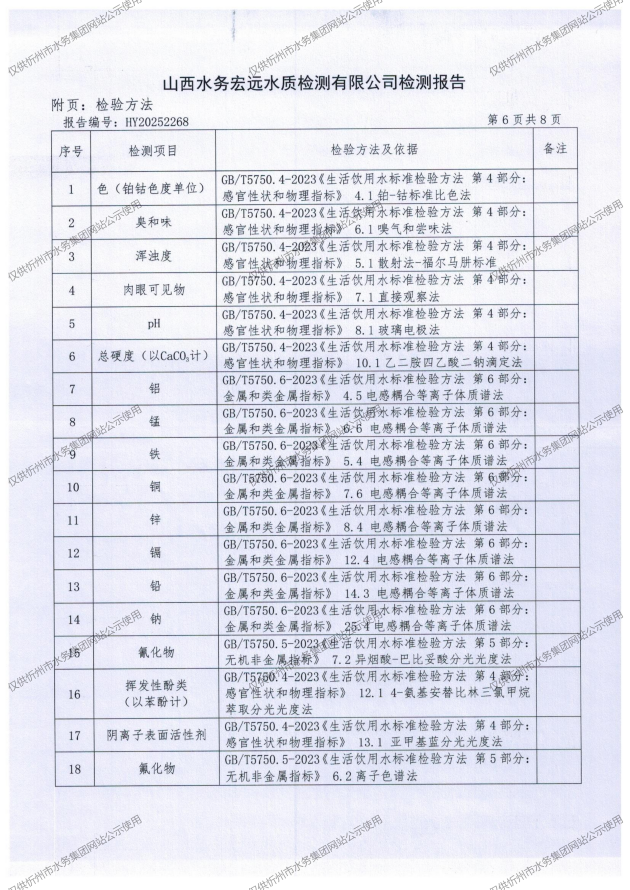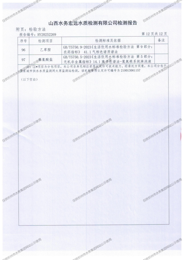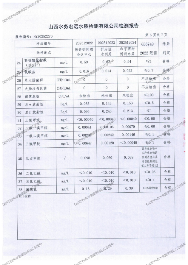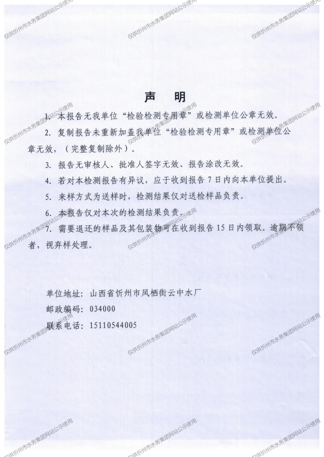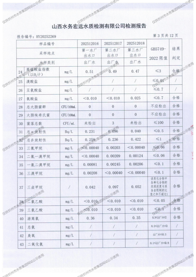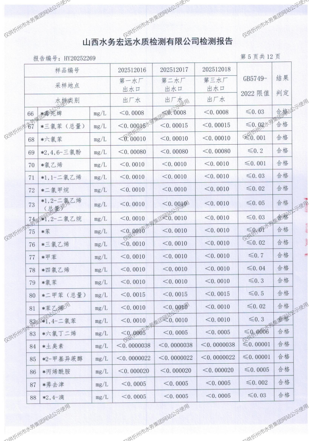忻州城區(qū)公共供水水源水、出廠水、管網(wǎng)水、管網(wǎng)末梢水2025年12月份水質信息公示